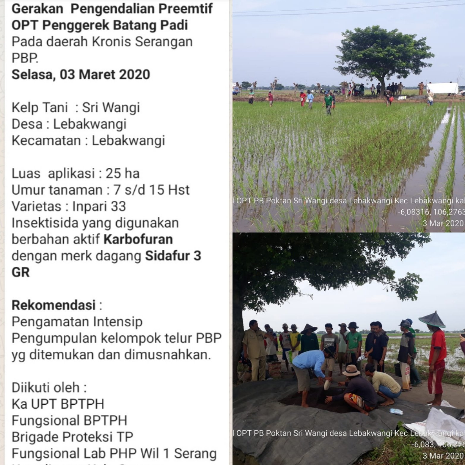 Gerakan pengendalian preemtif OPT pengerek batang padi di Kab. Serang, 03 Maret 2020